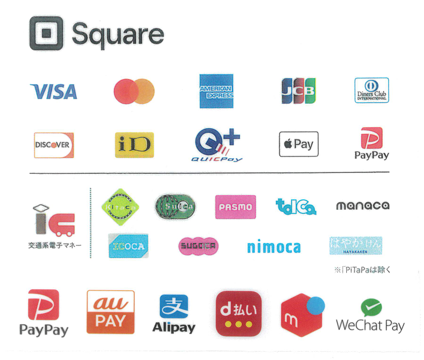 支払い方法が現金のみから、下記のお支払いも可能となりました。